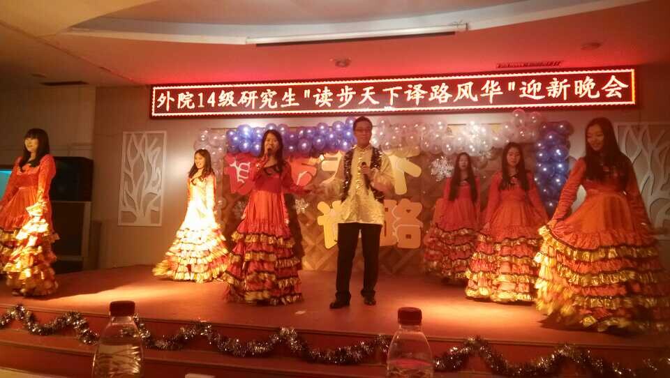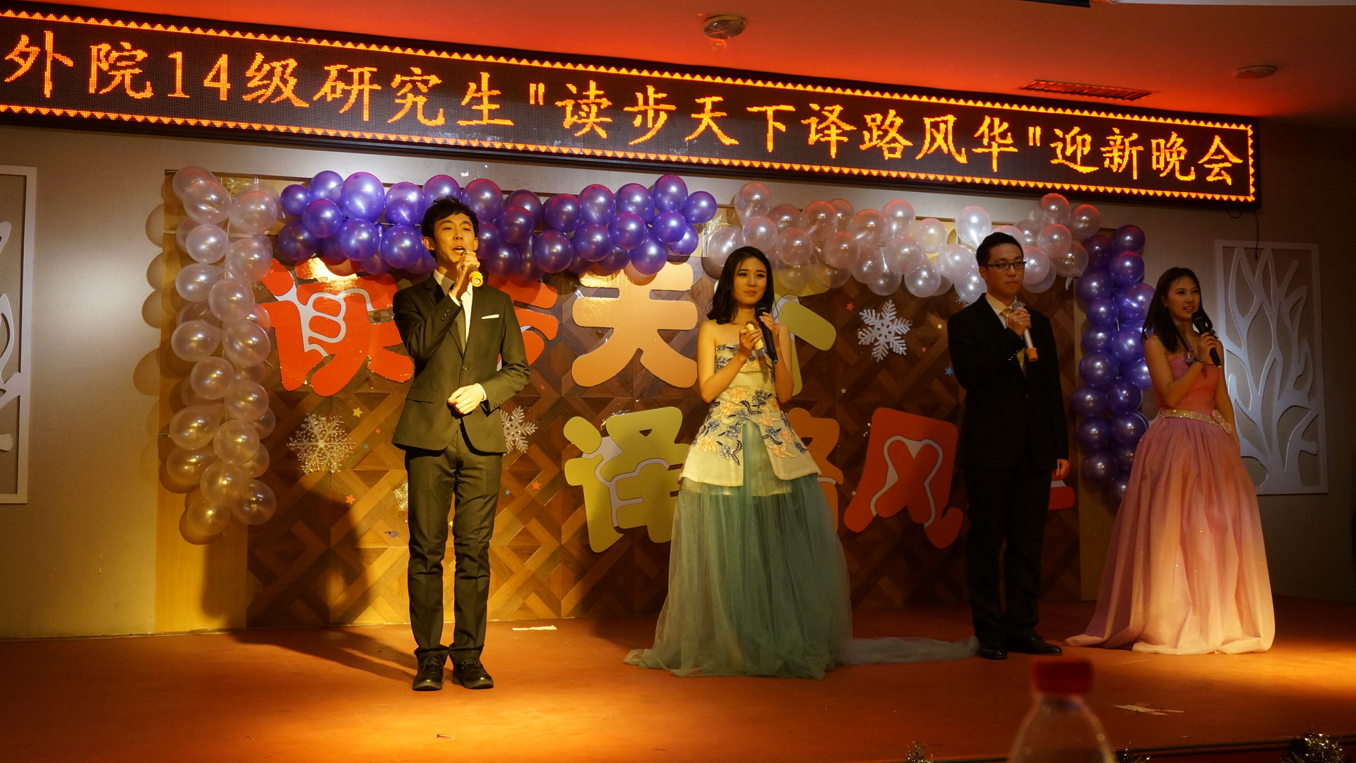 关于2014级研究生“读步天下,译路风华”主题迎新晚会于11月30日晚18:00,在中心校区莘子园三楼成功举办。周异夫经理、逄锦彩书记和学院的部分教师、校研会副主席彭海同学、2014级全体研究生以及2012级、2013级员工代表参加了晚会。