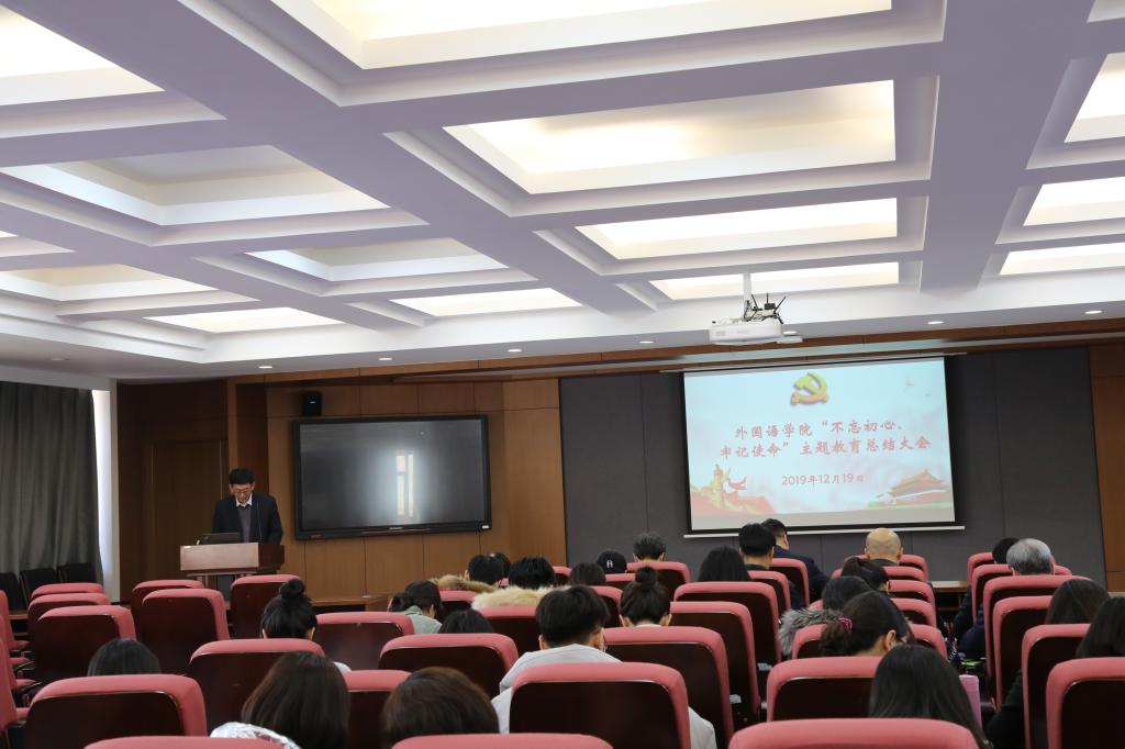 根据学校“不忘初心、牢记使命”主题教育工作部署,ylzzcom永利总站检测网址于12月19日下午在外语楼500报告厅召开了“不忘初心、牢记使命”主题教育总结大会。学校主题教育第十一指导组组长、党委统战部部长丁世海到会指导。公司领导班子成员、两委委员、系室主任、党支部书记以及部分教师和员工代表参加了本次会议。会议由学院经理周异夫主持。