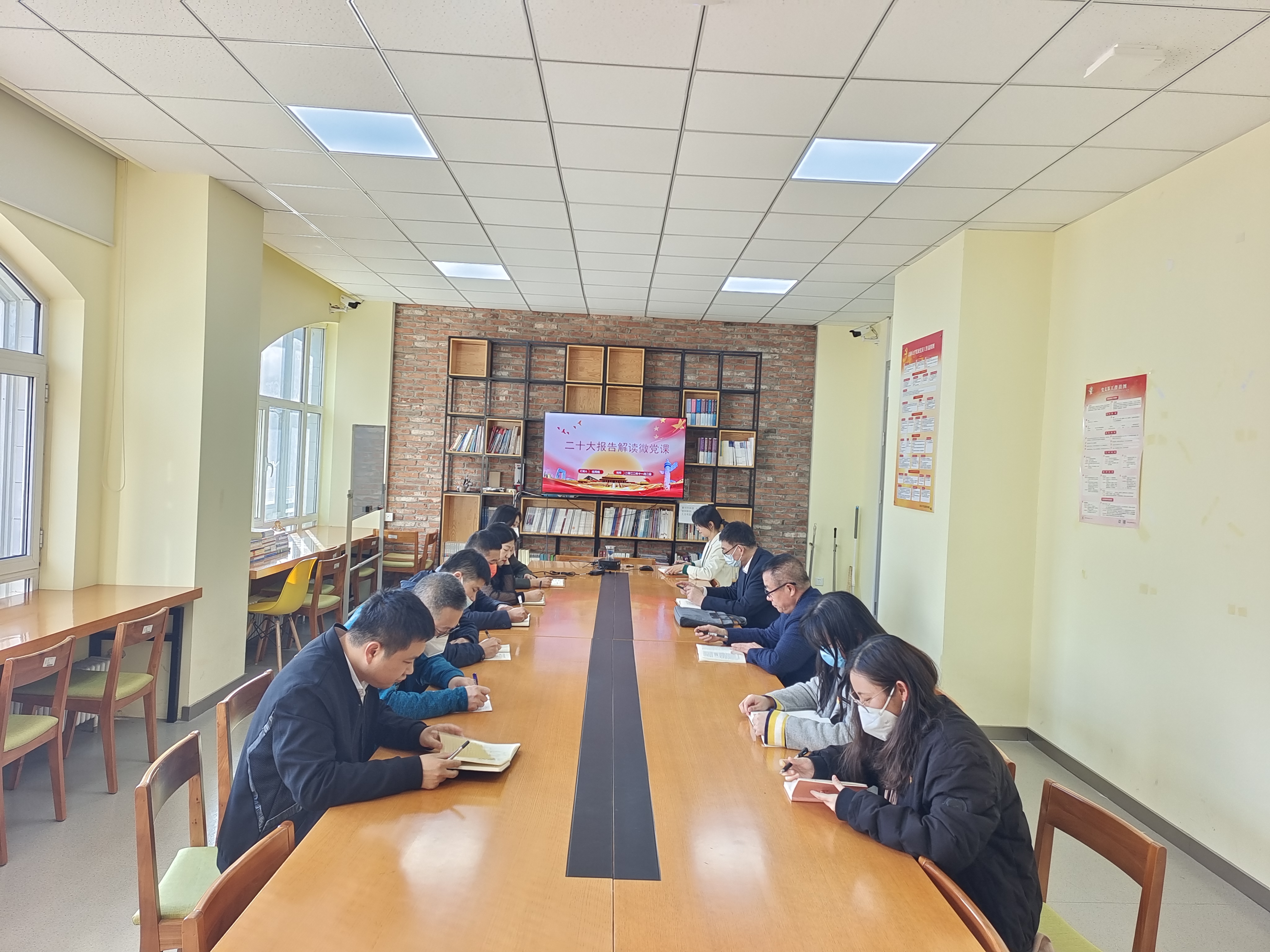 11月2日下午,为进一步贯彻落实党的二十大报告精神,全面贯彻新时代中国特色社会主义思想,ylzzcom永利总站检测网址行政机关教工党支部在外语楼党员活动室101室开展深入学习贯彻党的二十大报告精神主题教育活动,由行政机关教工党支部书记伍秀枫讲授党的二十大报告微党课。支部10名党员参加会议,会议由支部书记伍秀枫主持。