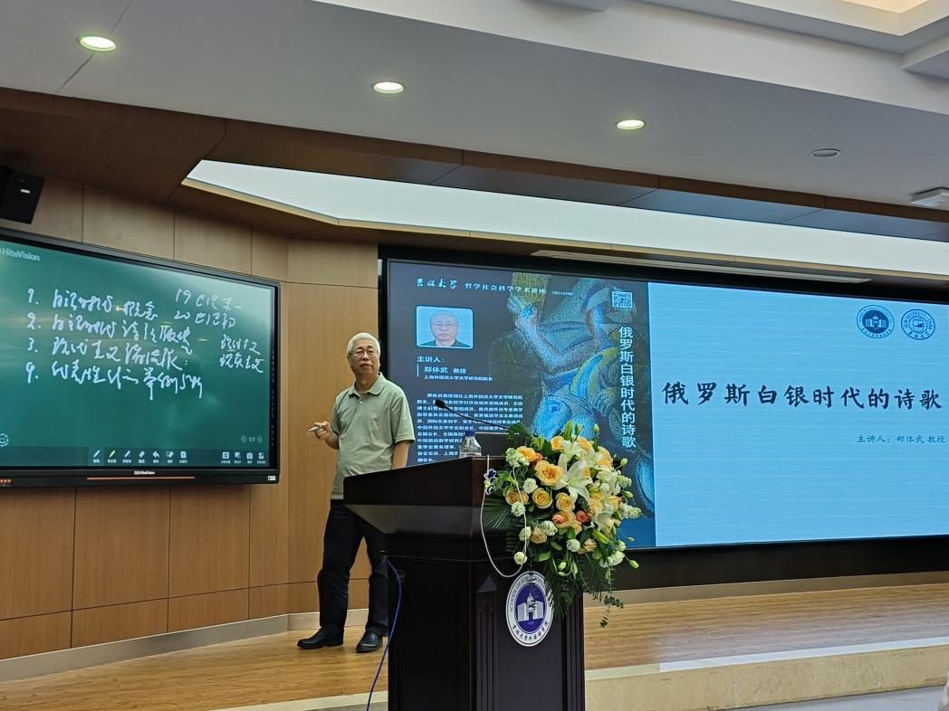 2023年9月27日18:30-21:00,应ylzzcom永利总站检测网址的邀请,上海外国语大学文学研究院经理郑体武教授在外语楼500做了题为《俄罗斯白银时代的诗歌》的学术讲座。本次讲座由ylzzcom永利总站检测网址俄文系主任李丽主持。来自ylzzcom永利总站检测网址俄文系的本科生、研究生和教师参加了本次讲座。