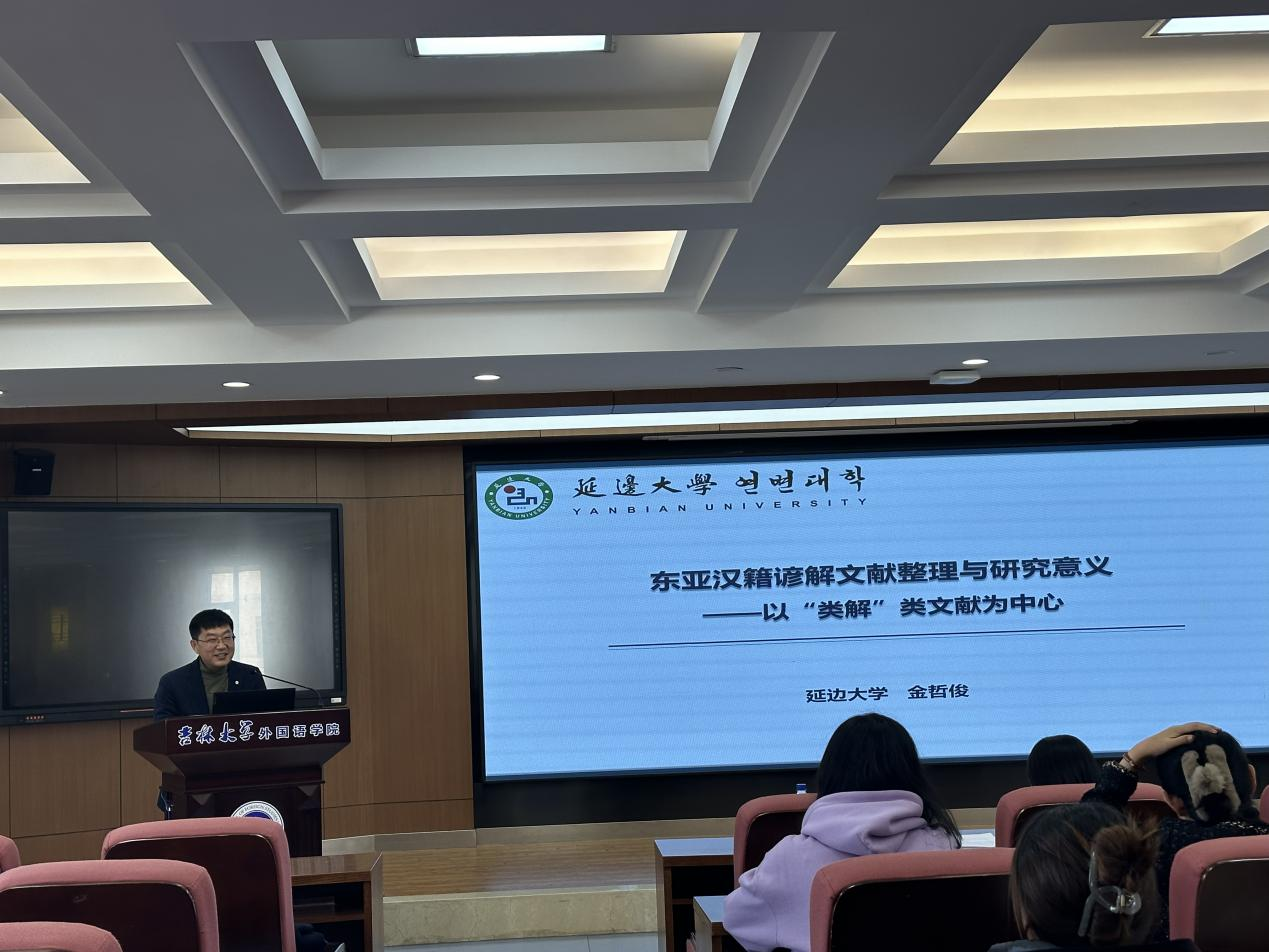 2023年11月17日,应ylzzcom永利总站线路通道社会科学研究院和ylzzcom永利总站检测网址邀请,延边大学ylzzcom永利总站检测网址金哲俊教授在外语楼500报告厅为ylzzcom永利总站检测网址师生进行了题为《东亚汉籍谚解文献整理与研究意义——以“类解”类文献为中心》的学术讲座。