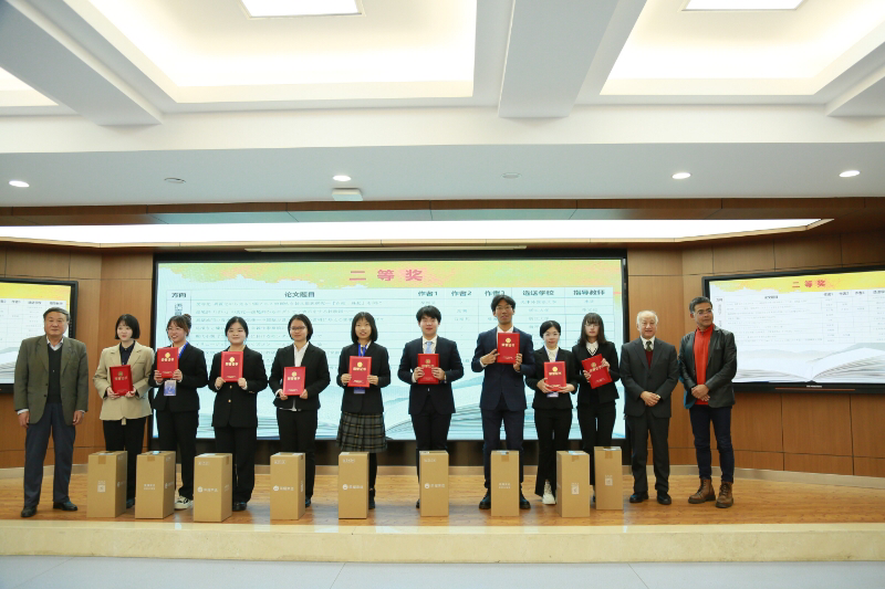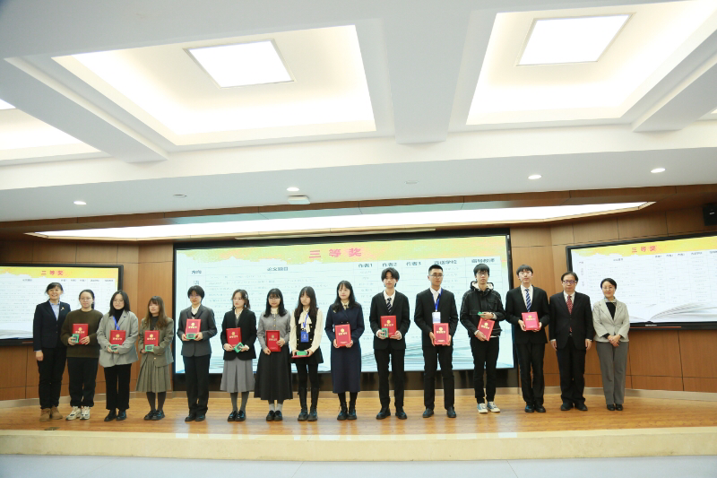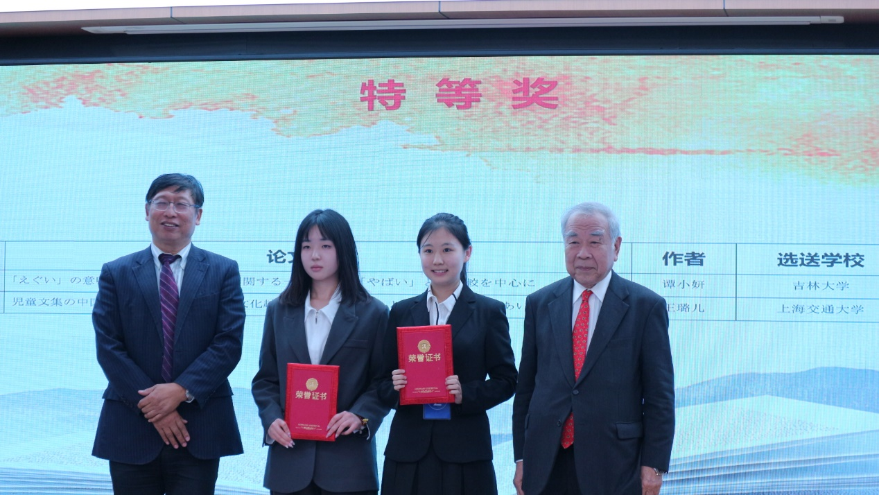 在本次决赛中,公司日文系学子凭借创新的研究视点和出色的现场发挥,在各校众多选手中脱颖而出共夺得四个奖项。2021级谭小妍同学独占鳌头摘得语言学组特等奖;2021级龚世颖、孙钰鑫两位同学荣获文化组二等奖;2021级丁伶俐、邓欣怡、邢惠淋三位同学获得文化组三等奖;2020级袁鹰扬同学获得语言学组三等奖。他们取得以上优异成绩展现了日文系对员工运用日语解决具体问题的能力、创新能力与独立研究能力的培养成果。未来日文系将继续重视员工综合实践能力的培养,为国家培育更多优秀的复合型日语人才。