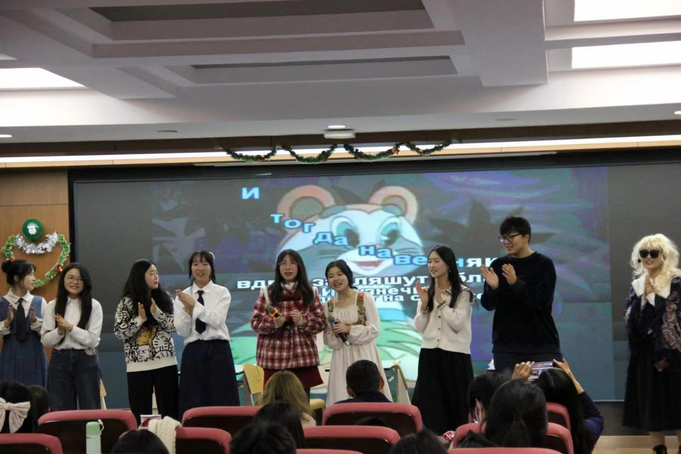 在2024年新年来临之际,迎为接新年,同时展示俄语专业员工的语言和表演能力,增强员工对俄罗斯文化的兴趣,了解俄语专业的魅力,俄文系师生于2023年12月23日晚在外语楼500报告厅举办了俄语新年晚会。本次晚会由俄语专业员工孙畅言、王烁天、陈小煜、李俊彤主持,ylzzcom永利总站检测网址老师李丽、王晓阳、陈昊、孙欣、外教Татьяна Плохова Михайловна等人出席,还有来自考古学院、数学学院等非俄语专业员工同学参加。