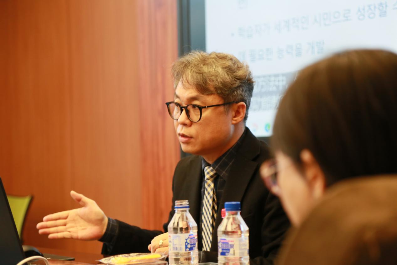 双方围绕MTI人才培养和“韩国语翻译的新视野——技术与人类的协调发展”开展了深入交流。金晶副经理向林亨栽教授介绍了朝文系的历史沿革、团队情况和MTI培养的方案、主要特征、以及成效和面临的问题。林亨栽教授充分肯定了朝文系MTI培养的成就,并就目前MTI培养面临的问题提供了自己的意见。