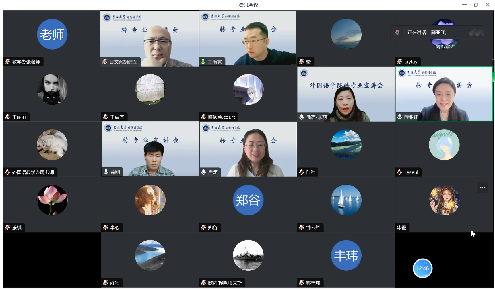 俄文系主任李丽副教授从俄语学习优势、团队队伍、专业课程、人才培养等方面介绍了俄语专业的基本情况。此外,李丽副教授还展示了二年级员工中俄互译的诗词和歌曲,体现了专业学习的趣味性。