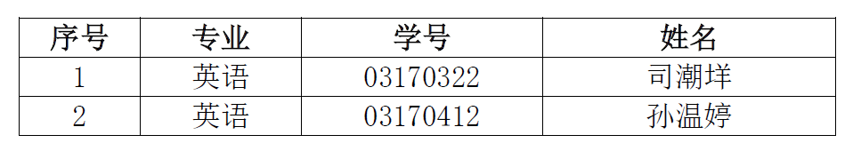 因2017级英语专业陈彬(学号03170222)、日语专业吴佳琪(学号03170914)自愿放弃免试攻读研究生资格,经ylzzcom永利总站检测网址推免工作领导小组研究决定,将推免名额重新分配后,决定以下2人为增补推免生: